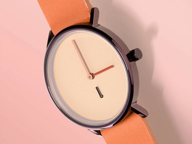 Diese Uhr ist einfach, raffiniert und spielt mit Farbe.