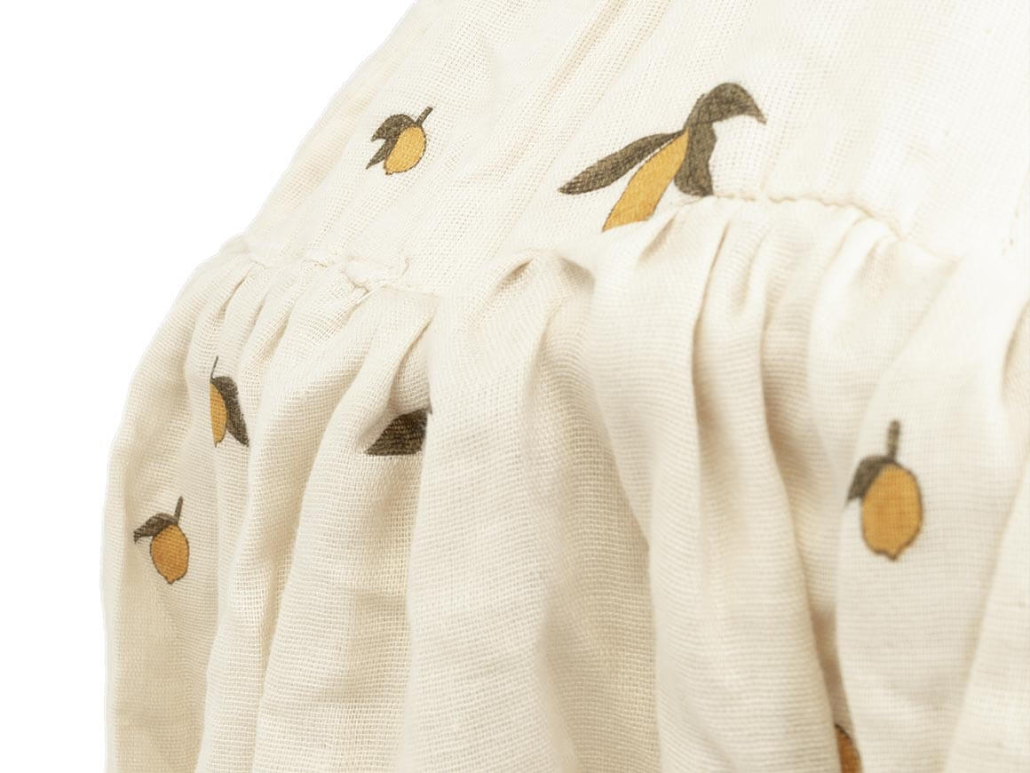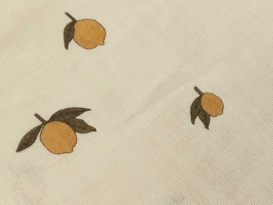 Die sanfte Farbe und die Zintronen-Prints sowie die leichte Musselin-Qualität verleihen diesem Betthimmel ein wolkenartiges Aussehen und laden die Kleinen zum Träumen und Ausruhen im eigenen Kinderzimmer ein. Der leichte Stoff in zarten Farben besteht aus weichem Bio Baumwoll-Musselin fügt sich harmonisch in jede Kinderzimmereinrichtung ein.
