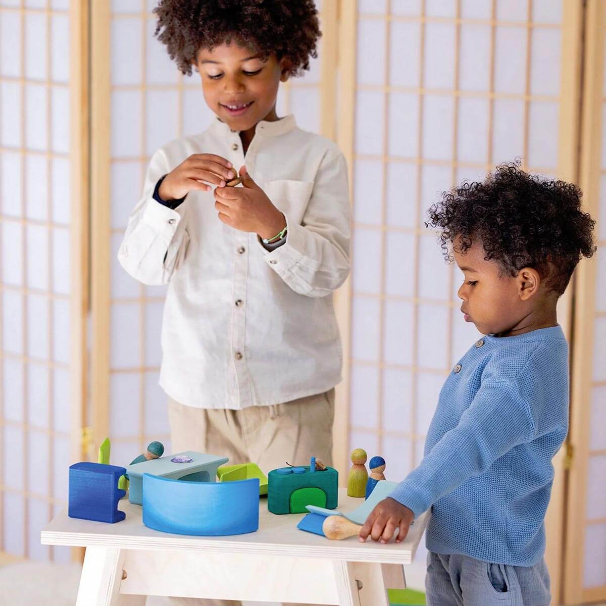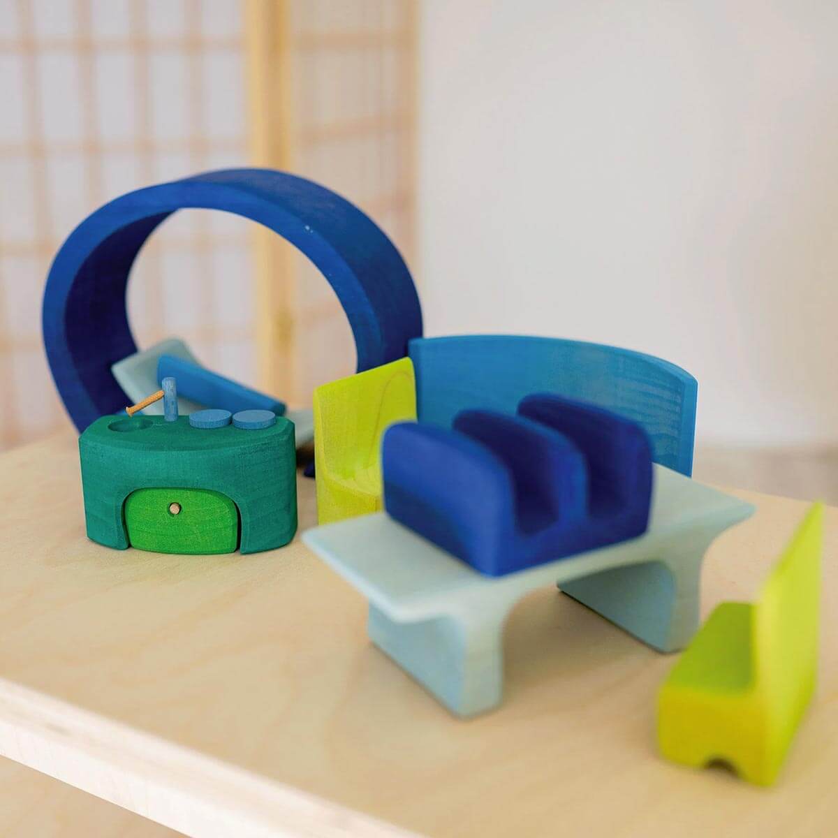 Blaues Bauhaus von GRIMM’S – Kreatives Puppenhaus to-go