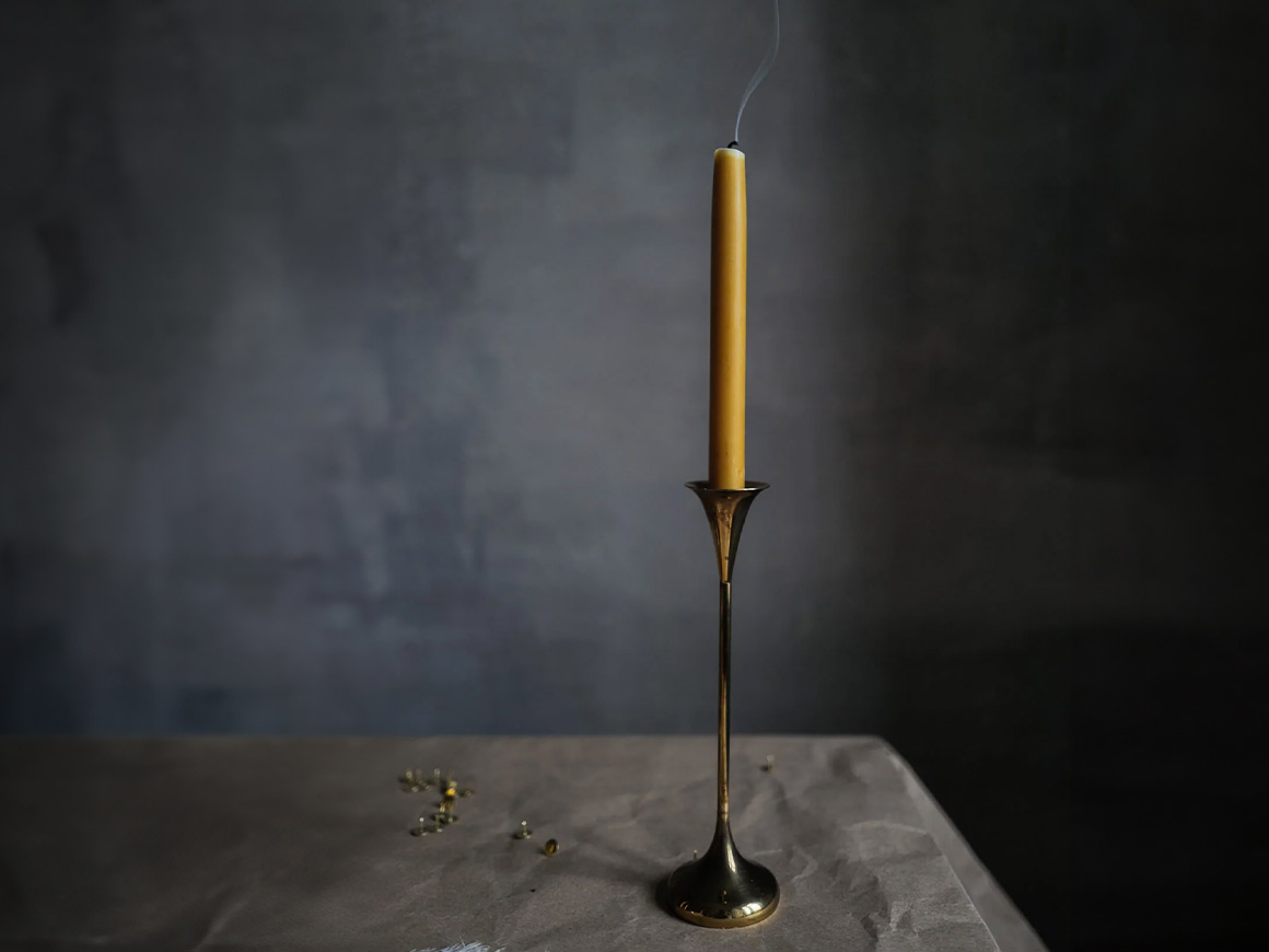 Um die Kerze zu löschen, empfehlen wir, den Docht vorsichtig mit einem feuerfesten Werkzeug, hier mit unserer Dochtschere von DUFTE Manufaktur, in das flüssige Bienenwachs zu neigen und dann wieder aufzurichten.