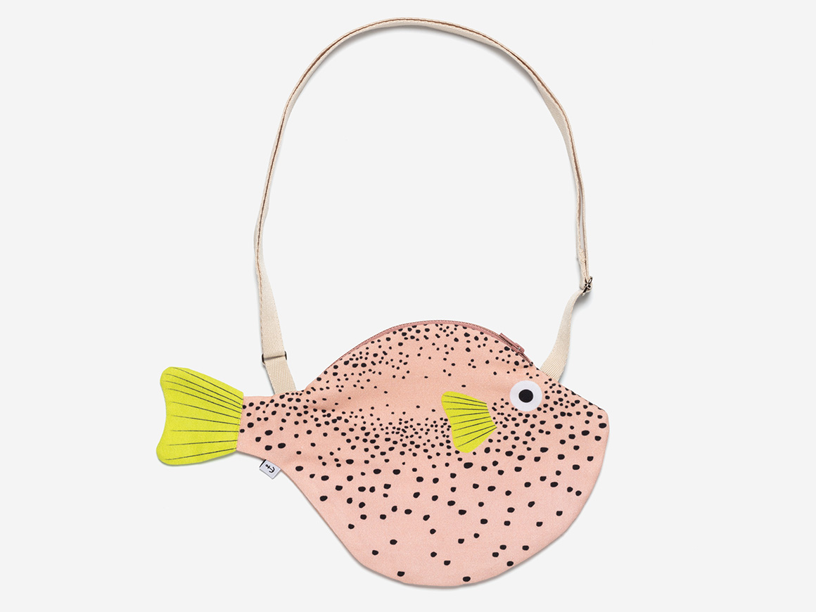 Er kommt im warmen Wasser des Südpazifiks vor der australischen Küste vor. Die kleine DON FISHER Small Pink Pufferfish Tasche ist genau das Richtige für kleine Fischfreunde. Die Tasche gibt es bei uns hier auch in der Farbe aqua-blau.