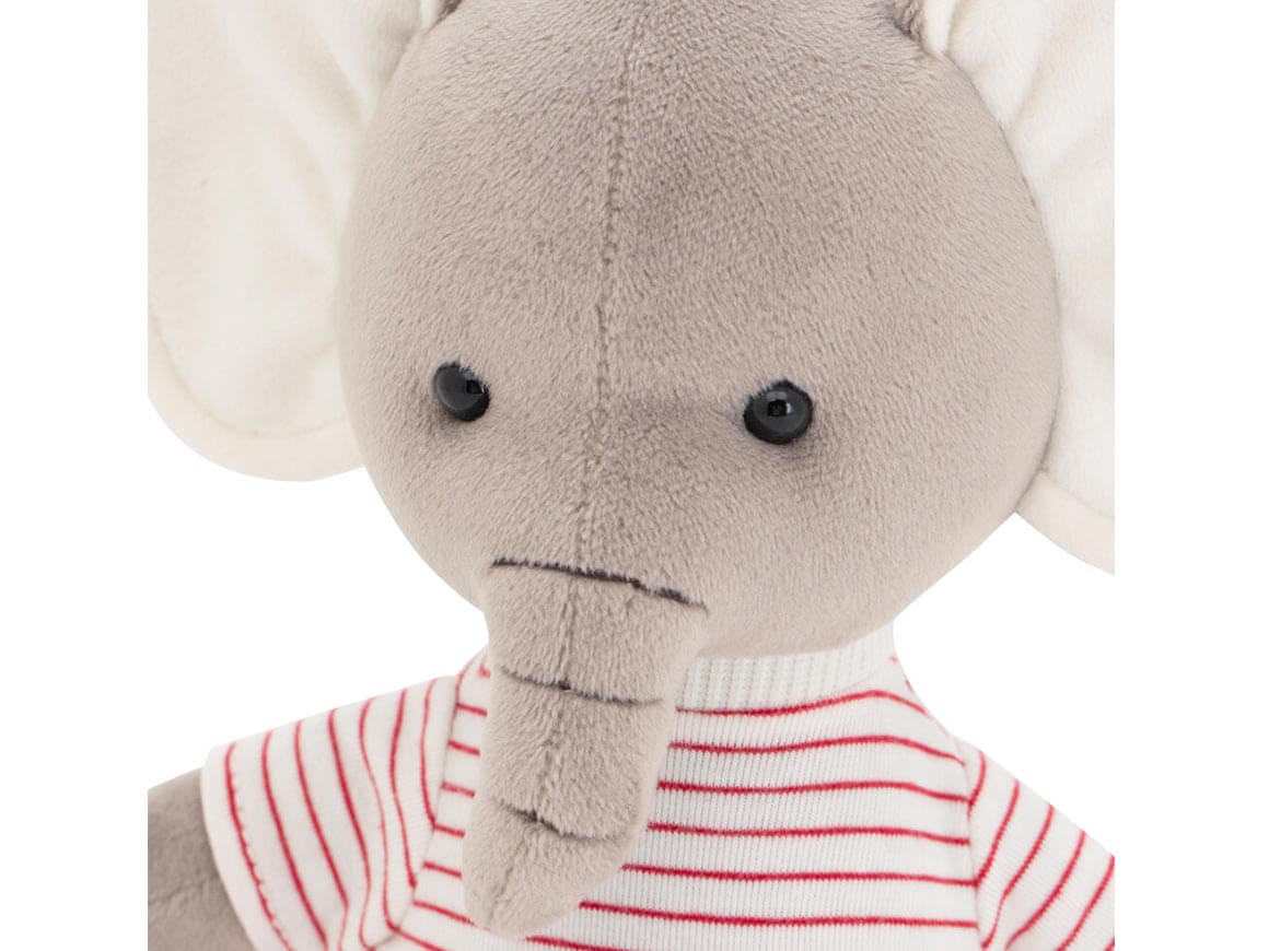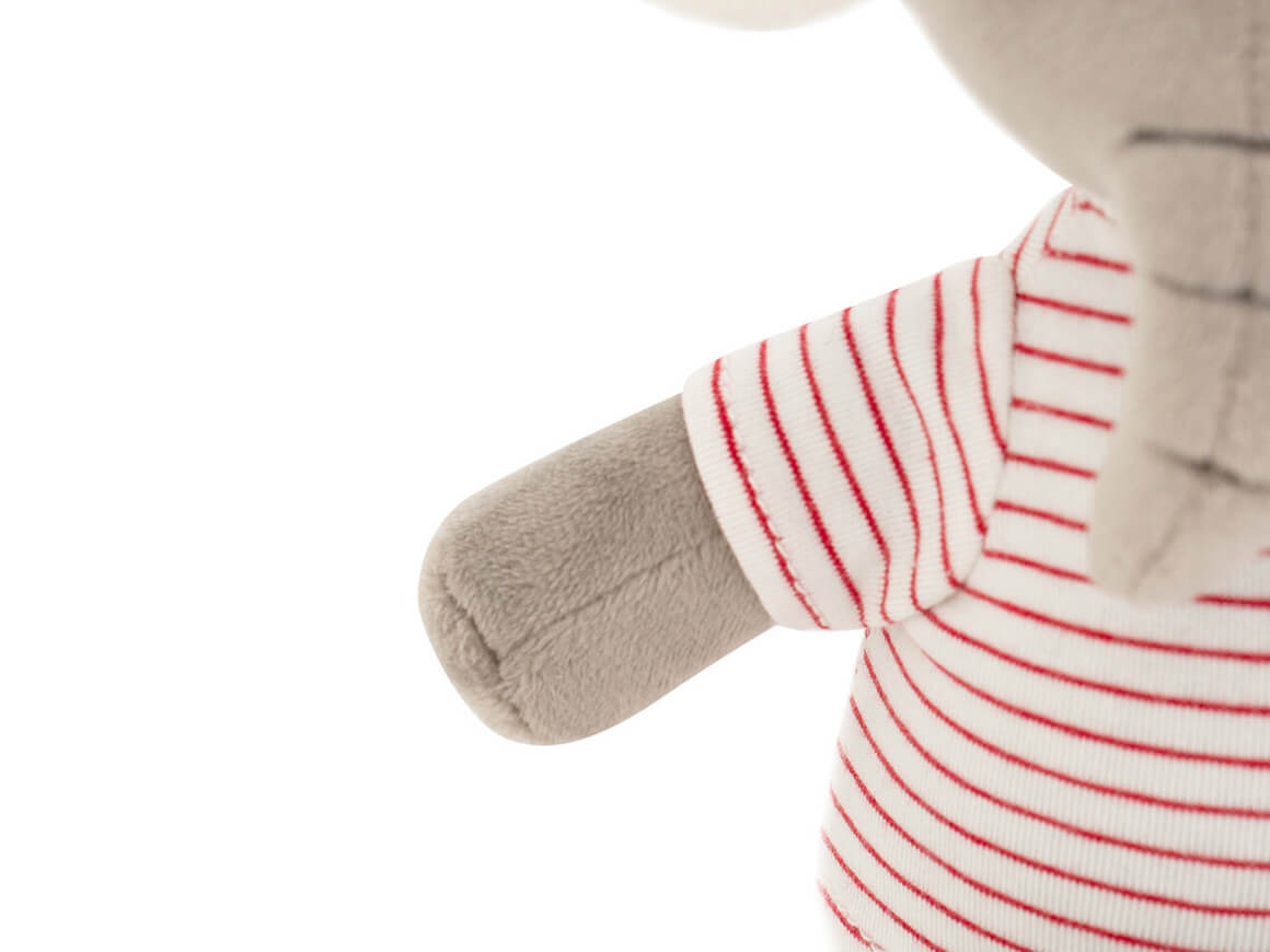 Sein niedlich, verspieltes Aussehen macht Bruno zu einem stilvollen Blickfang im Kinderzimmer. Das rot-weiß gestreifte Hemdchen verleiht ihm eine verspielte Note und unterstreicht seinen charmanten Charakter – Tröt!