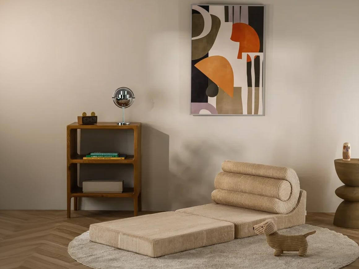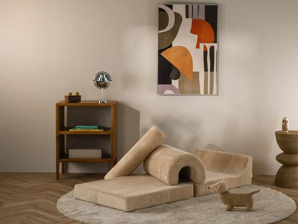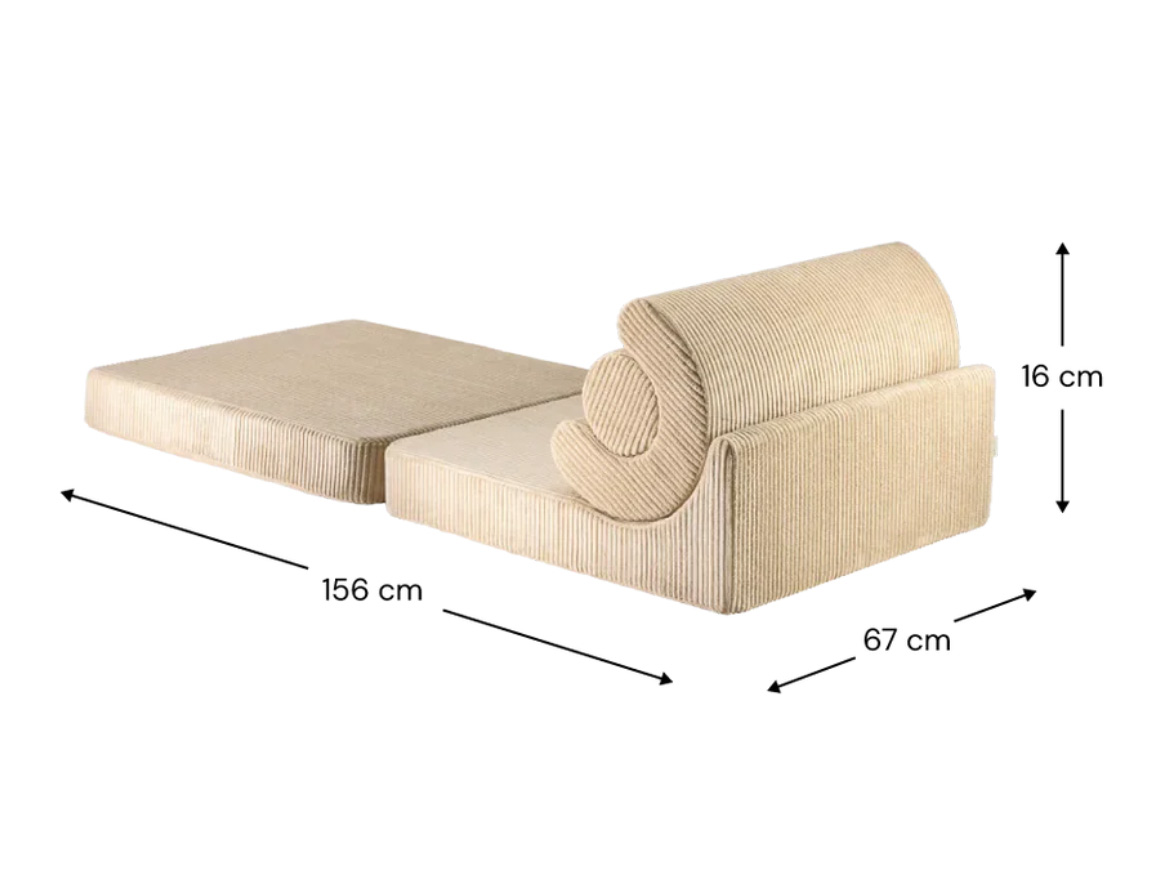 Mit wenigen Handgriffen lässt er sich in eine bequeme Liege, ein tempräres Kinderbett oder eine gemütliche Spielhöhle verwandeln und passt sich damit flexibel den Bedürfnissen Ihres Kindes an.