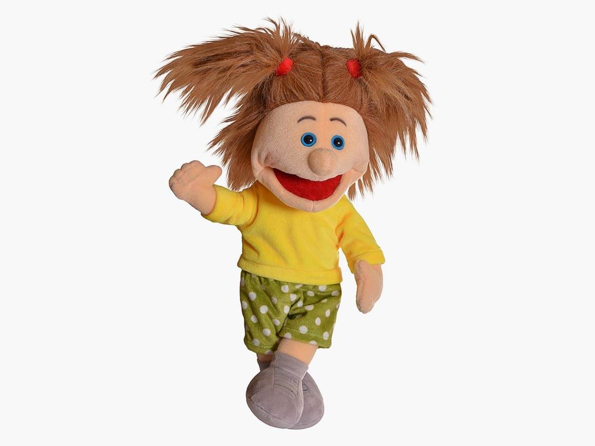 Die Handpuppe Hanne begeistert Kinder und Erwachsene gleichermaßen. Mit ihrer liebevollen Gestaltung und ihrem aufgeweckten Lachen bringt Hanne eine Extraportion Spaß in jedes Zuhause. Die Handspielpuppe von Living Puppets ist 35 cm groß, verfügt über einen Handeingang am Kopf und einen bespielbaren Mund, wodurch sie sich perfekt für kreative Rollenspiele eignet.