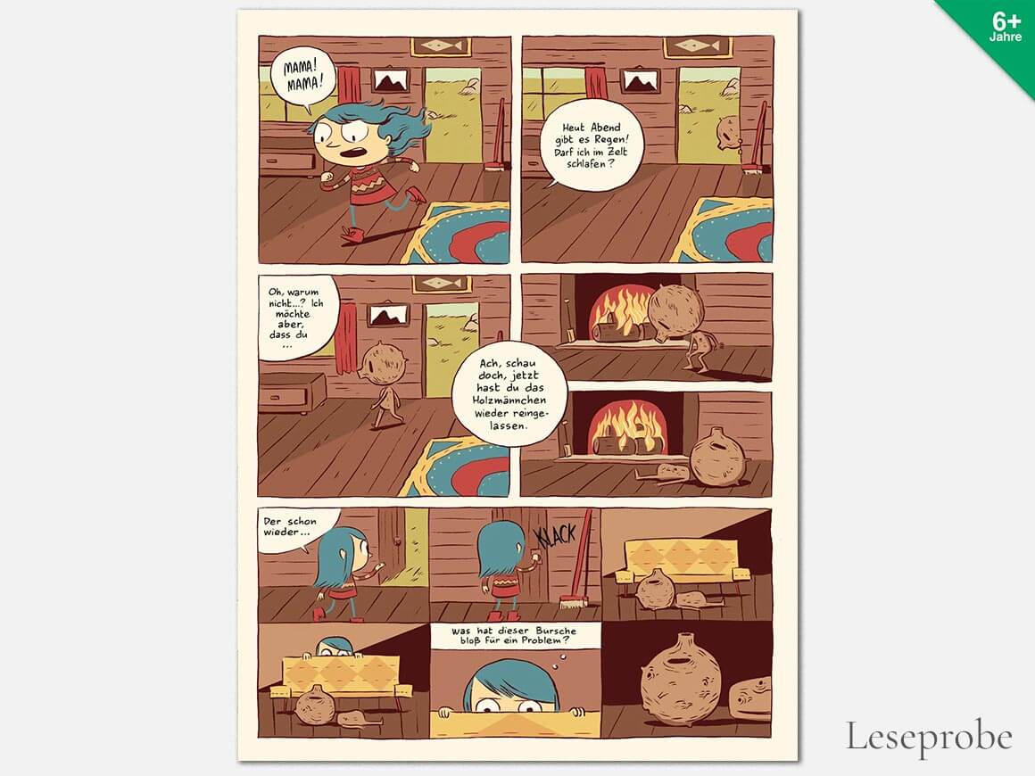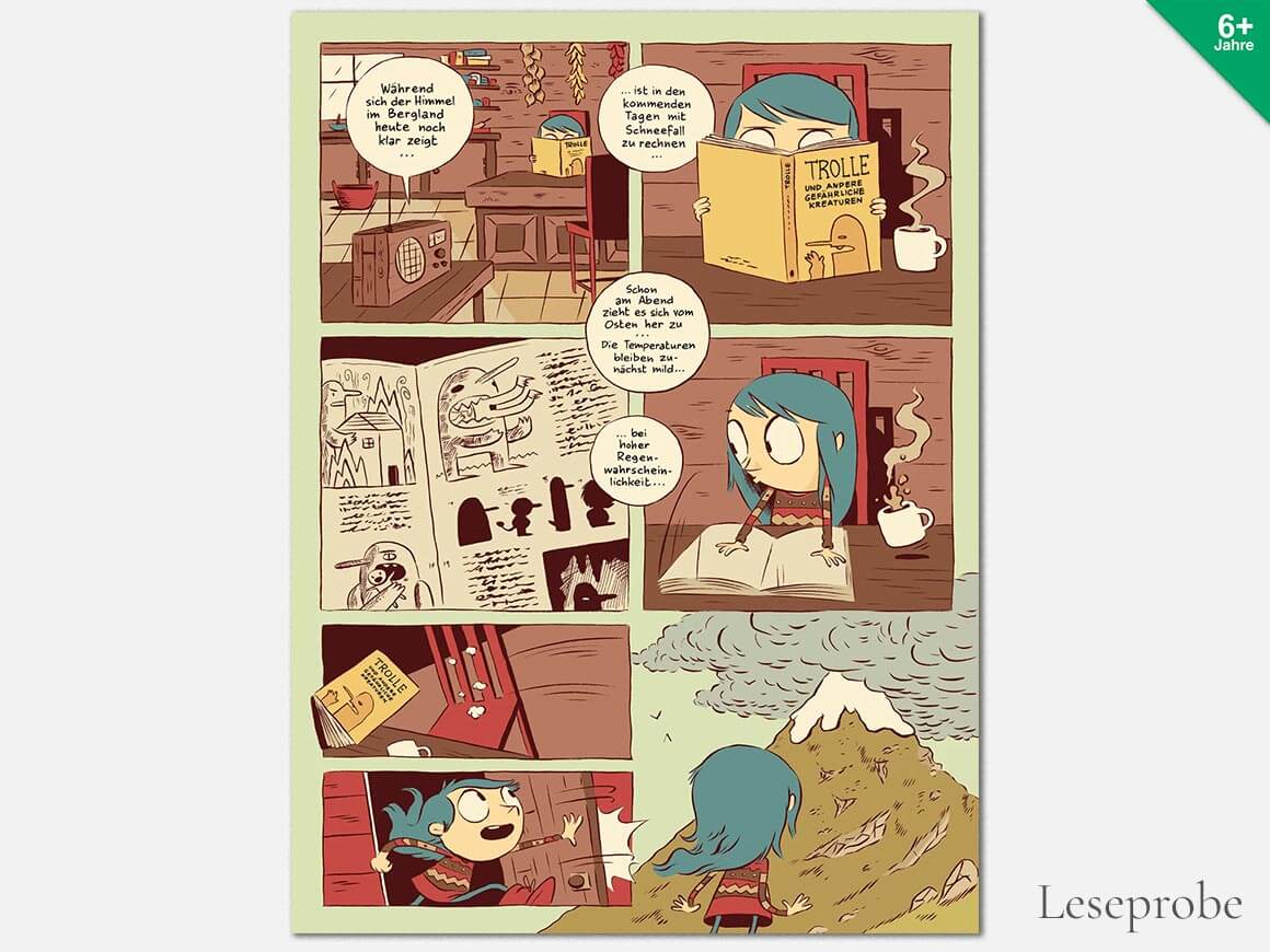 Hilda liebt es, die verwunschenen Täler ihrer nordischen Heimat zu durchstreifen und Freundschaft mit den skurrilsten Geschöpfe zu schließen. Die Suche nach einem Bergtroll aber erweist sich als gefährliches Abenteuer – die blauhaarige Entdeckerin wird inmitten der Wildnis von einem heftigen Schneesturm überrascht. Auf ihrer Suche nach dem Heimweg entgeht Hilda nur um Haaresbreite dem mächtigen Fuß eines ahnungslosen Riesen und trifft schließlich auf ein einsames Holzmännchen…