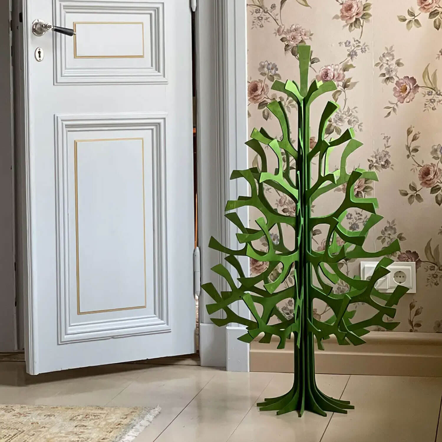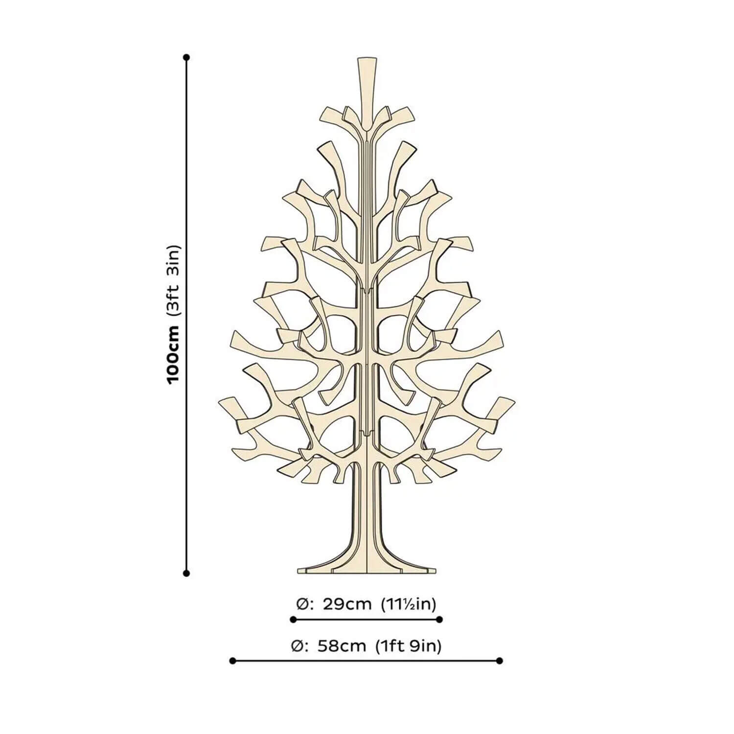Der Lovi Spruce 100 cm besteht aus 15 präzise gefertigten Teilen. Dank der patentierten Lovi-Steckstruktur lässt er sich leicht auf- und abbauen, ohne Werkzeug oder Kleber. Mit 58 cm Durchmesser und stabilem 29 cm Fuß ist dieser Baum das perfekte Design-Highlight – ein echter Blickfang auf Boden, Tisch oder Podest.