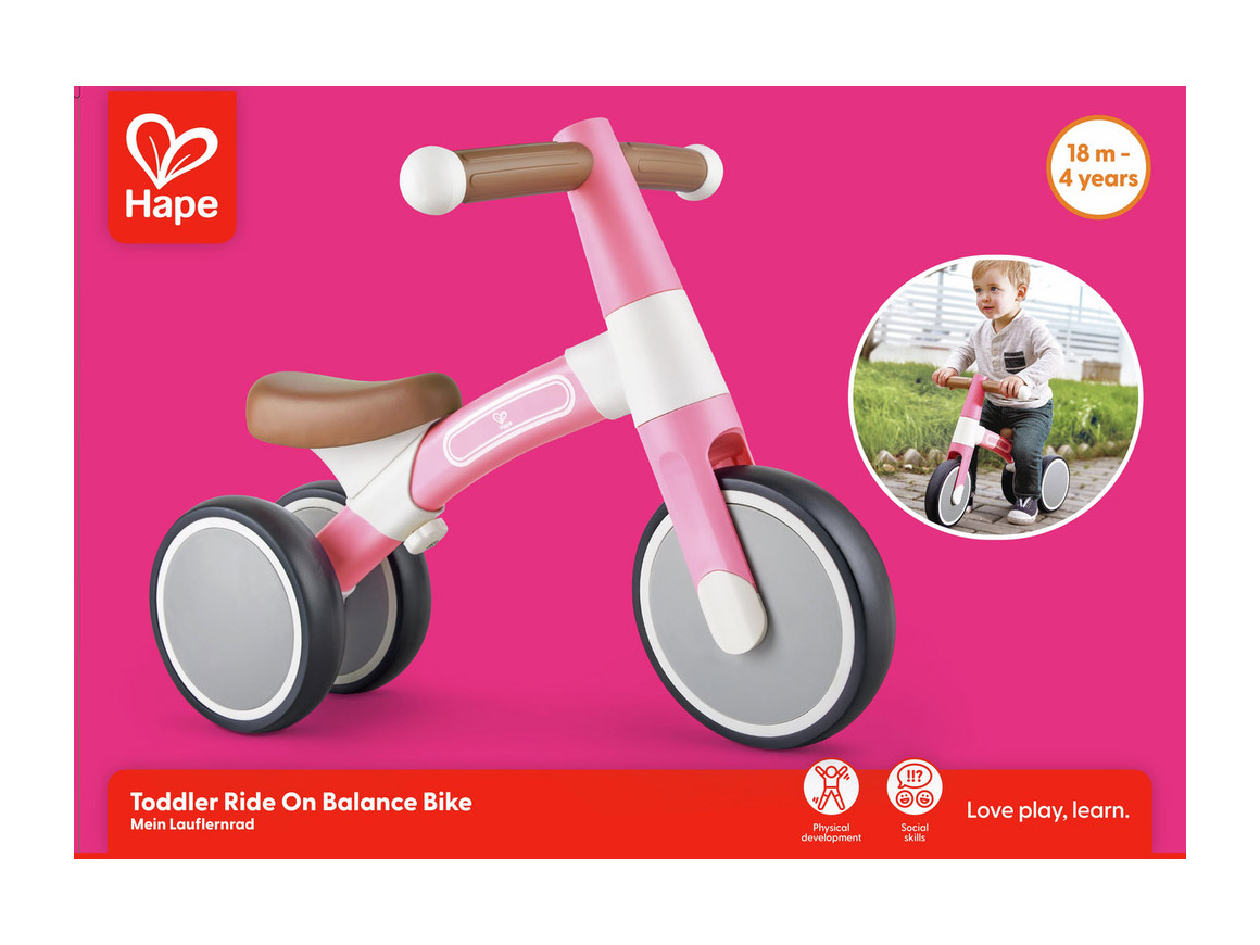 Das Hape Lauf-Dreirad in Rosa ist der perfekte Einstieg in die Welt der Kinderfahrzeuge und eignet sich ideal für Kinder ab 18 Monaten.