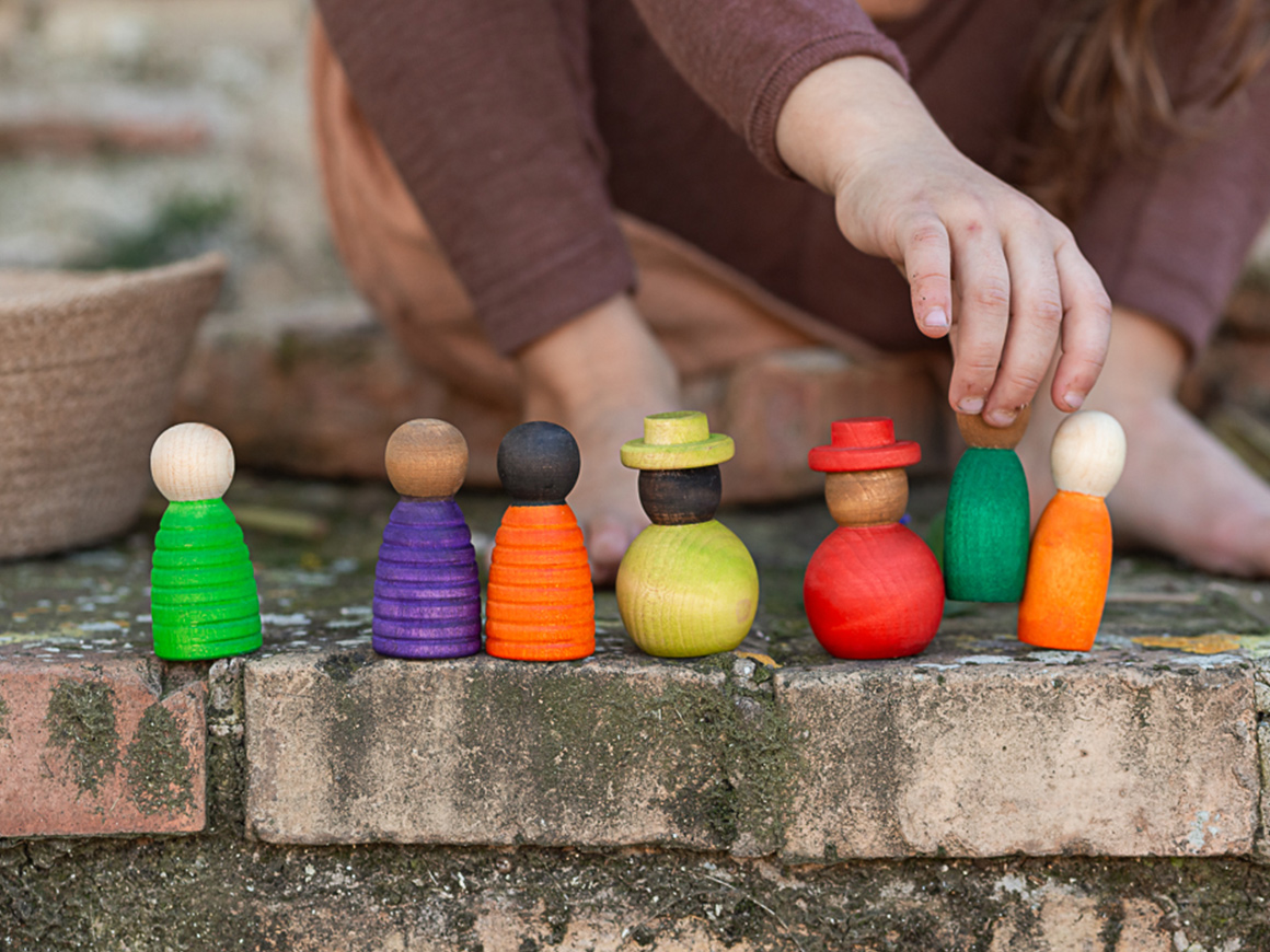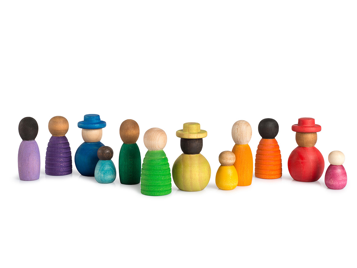 Die unterschiedlichen Holzfiguren Nins® TOGETHER von GRAPAT können für viele fantasievolle Spiele verwendet werden. Die süßen Figuren Nins® TOGETHER von GRAPAT sind aus zertifiziertem Holz und erweitern die Vorstellungskraft des Kindes. Die GRAPAT Figuren Nins® TOGETHER können ganz ohne Anleitung gespielt werden. Das Set enthält zwölf Figuren in 3 Hauttönen. 3 schmale Nins, 3 breite Nins, 3 geriffelte Nins und 3 Baby Nins in einem schönen Stoffbeutel. Das NINS Spielzeug ermöglicht das Zusammenspiel verschiedener Generationen und Ethnien. Außerdem fördern die Nins® TOGETHER die Entwicklung des logisch-mathematischen Denkens durch Gruppieren und Zuordnen von Elementen und Farben oder Formen. Dieses Spiel verbessert die motorischen Fähigkeiten und ist offen und kreativ.