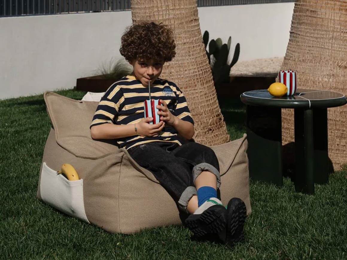 Als durchdachtes und stilvolles Outdoor Sitzmöbel für Kinder verbindet er Funktionalität mit einem minimalistischen, verspielten Design – ganz im Sinne von Wigiwama.