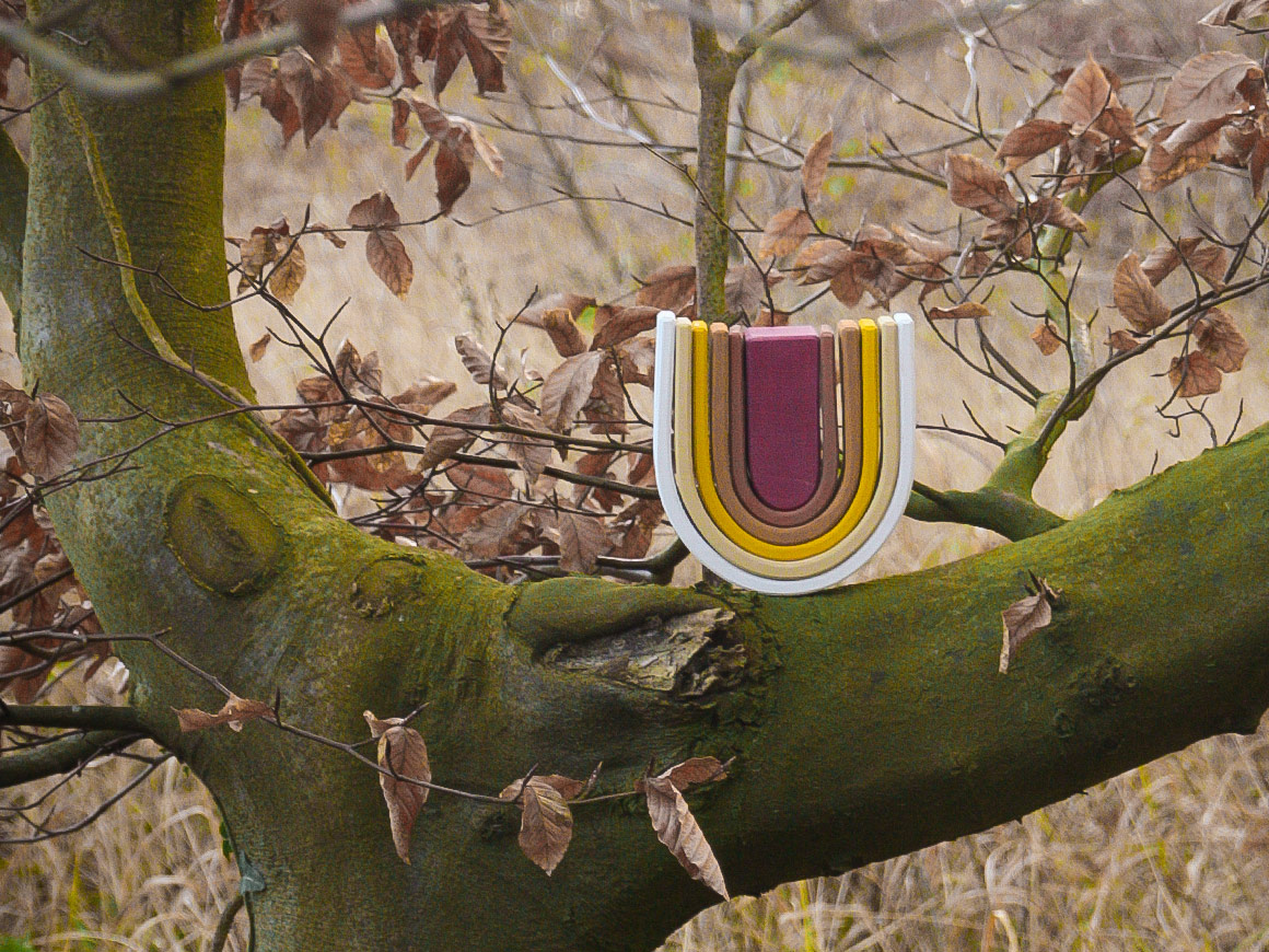 Ein Schritt zurück zur Natur geht dieser Regenbogen in ruhigen Erdtönen: Burgunder, Terrakotta, Ton, Senf, Beige und Weiß.