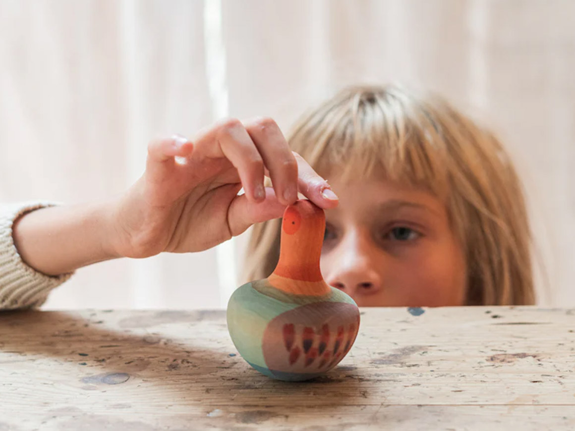MELLOW ORANGE BIRD – Kreisel aus Holz