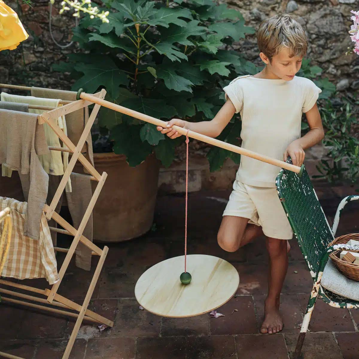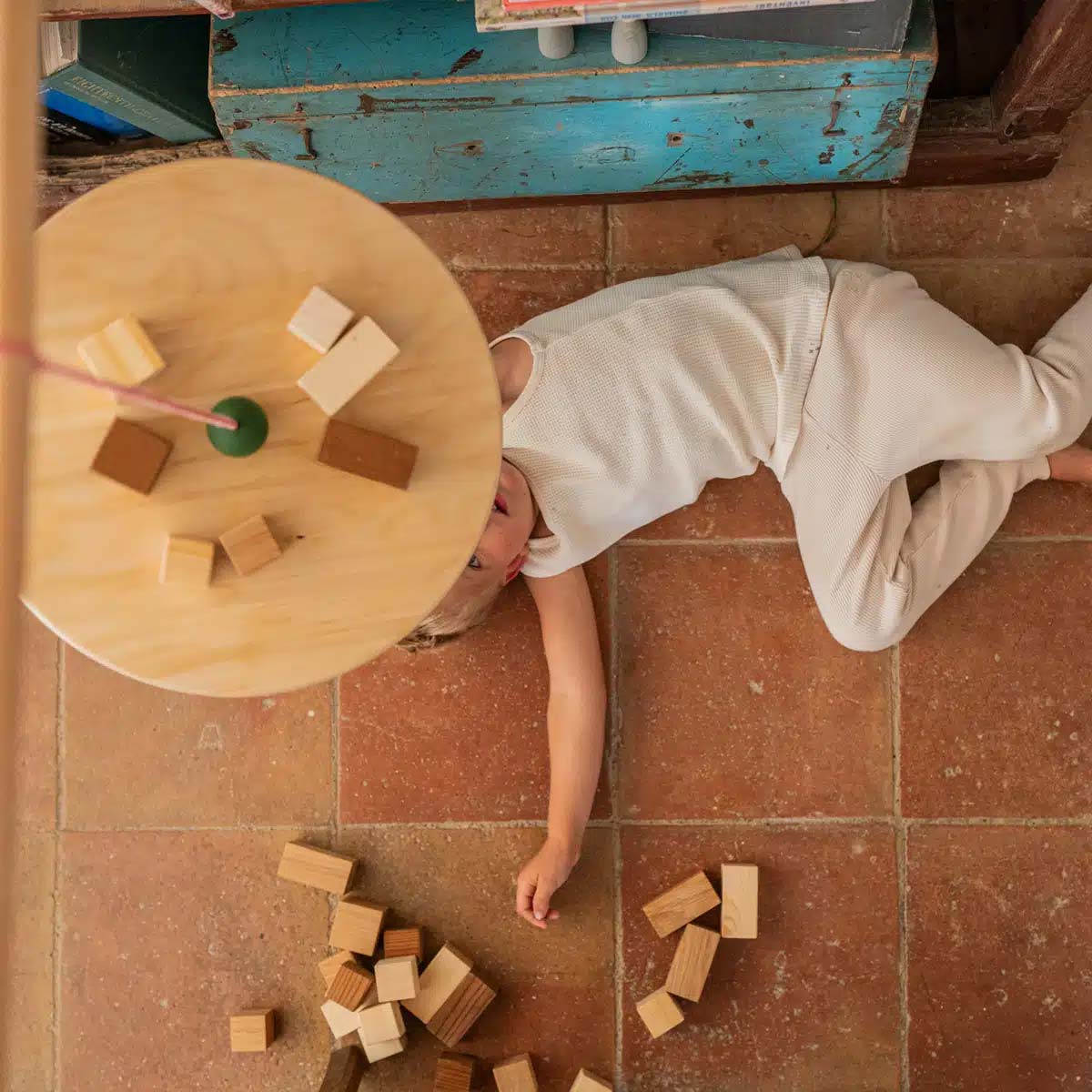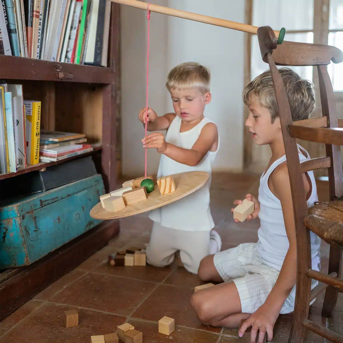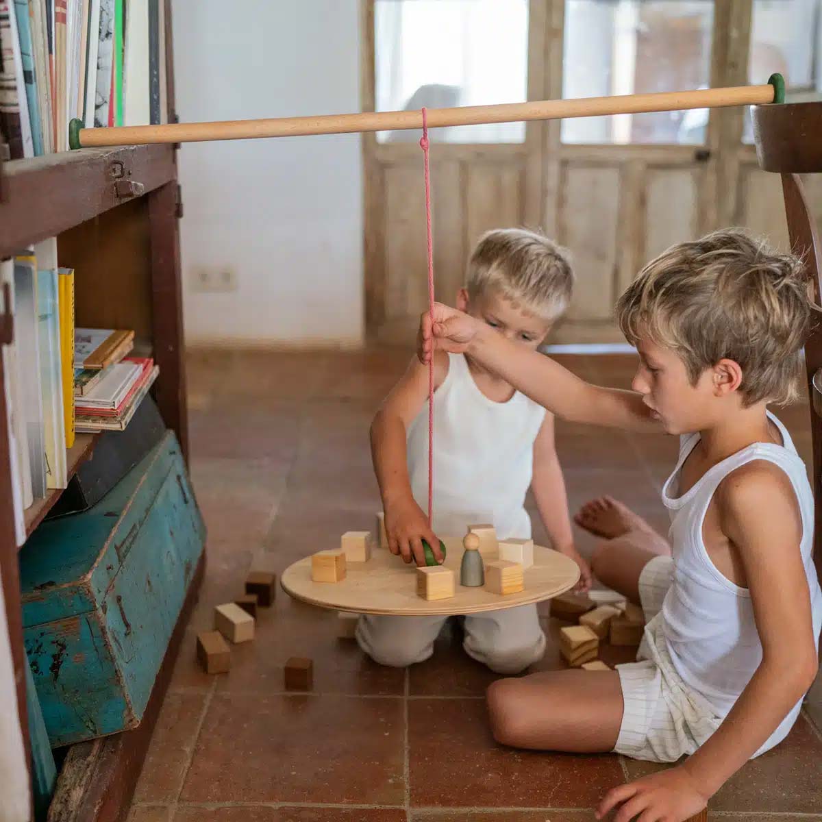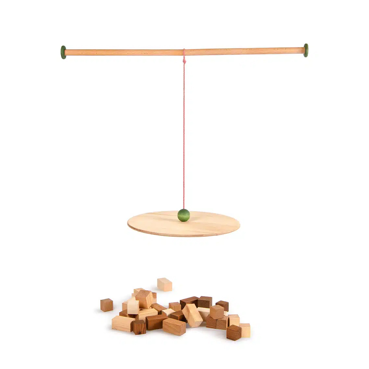 In diesem Sinne ist das Pendulum ein Spielmaterial, das keine Regeln diktiert und keine bestimmte Nutzung vorgibt. Es ist kein traditionelles Spielzeug mit nur einem Zweck, sondern eine Einladung zum Experimentieren. Bestehend aus Holzstücken und einer Schnur, eröffnet seine schlichte Form unzählige Möglichkeiten. In den Händen von Kindern verwandelt sich das Pendulum in eine Schaukel für Kuscheltiere, eine Brücke, ein schwingendes Pendel oder ein Experiment zu Gleichgewicht und Schwerkraft. Die Magie liegt im Prozess – im Ausprobieren, in Momenten der Überraschung und in endlosen Entdeckungen.