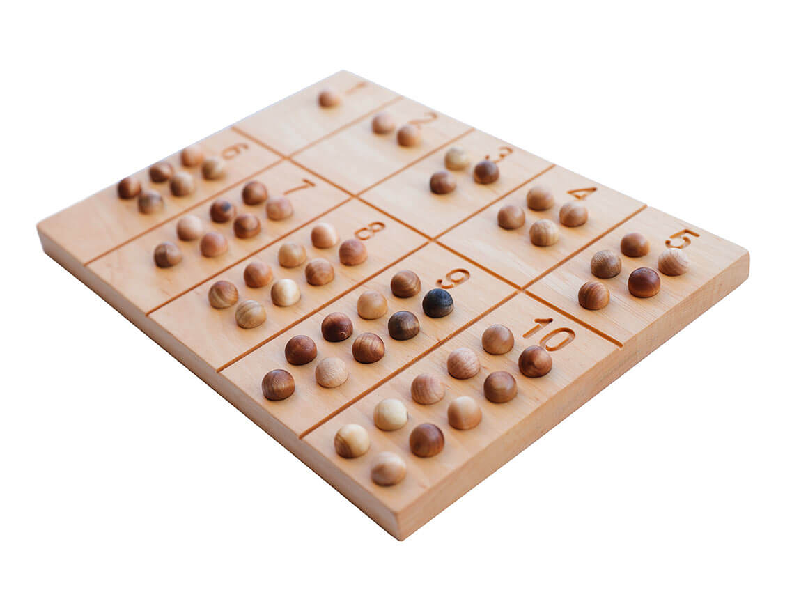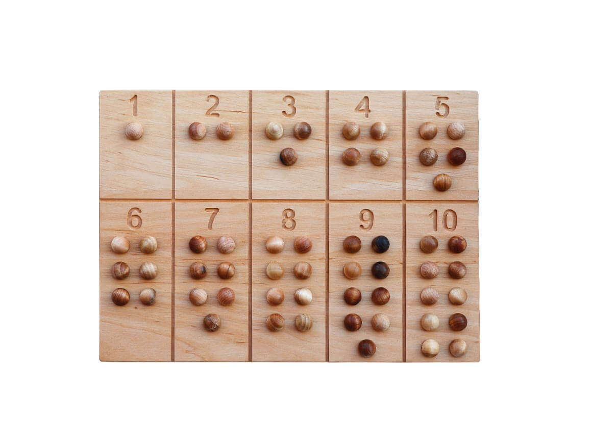 Es gibt endlose Möglichkeiten mit Zahlen auf dem Montessori Zahlenzählbrett von Wooden Story zu experimentieren.