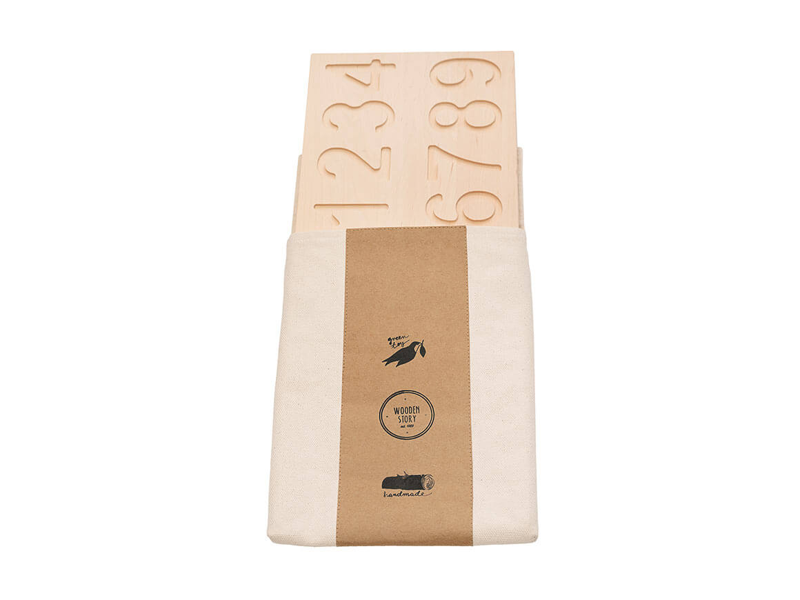 Das schöne Zahlenzählbrett ist in einem ökologischen Baumwolletui verpackt, das als Hülle oder Federmäppchen verwendet werden kann.