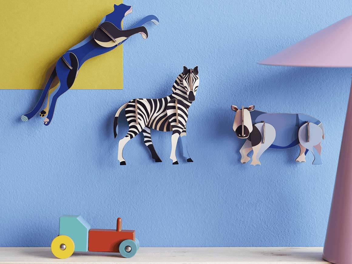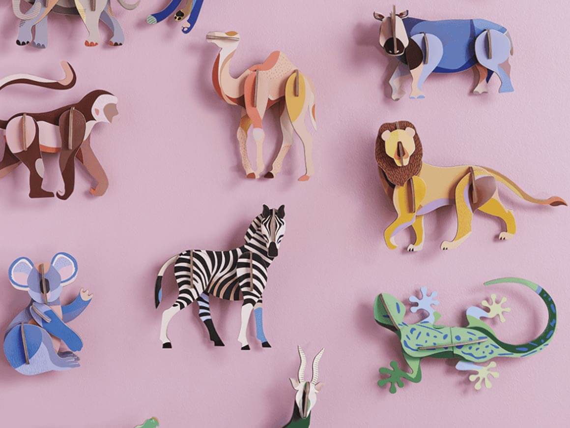 Bringen Sie mit diesen 3D-Tierdekorationen aus Pappe das Wunder der Tierwelt in das Zimmer Ihres Kindes oder in ein beliebiges Zimmer Ihrer Wahl.