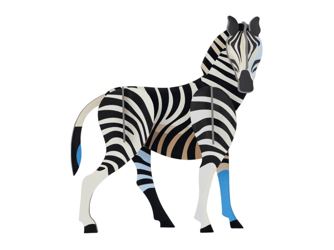 Das liebevoll entworfene Zebra von studio ROOF ist perfekt für kleine Kinderhände geeignet und läßt sich einfach zusammenbauen.